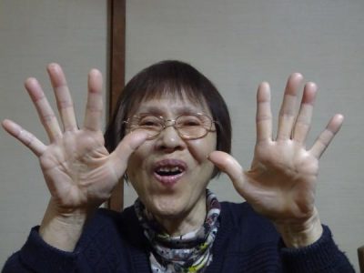 上手くたたけたぞぉ~ と大笑いの母