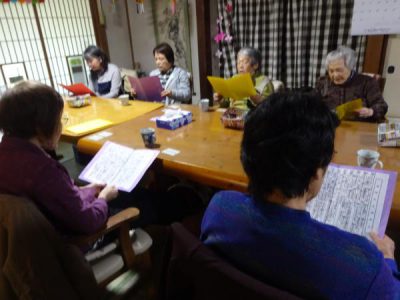ぼけたらあかんの唱和、合唱、歌謡体操が終わったら