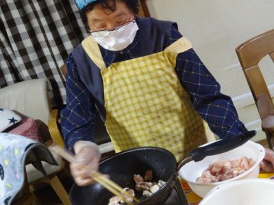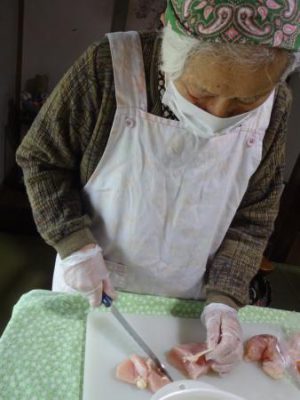 さっそく父や母達が野菜や鶏肉を