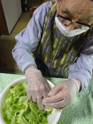レタスを細かく千切ったり