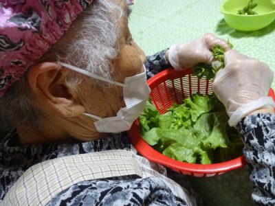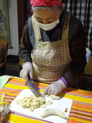 こちらの母達がバナナやキュウリ、長ネギを