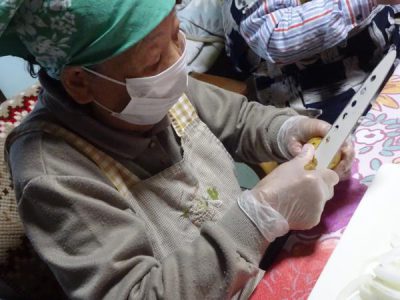 枝豆の中身を出していき父達も大活躍