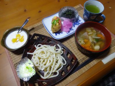 ヨーグルトやうどんなどを盛り付けたら 完 成
