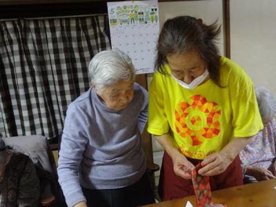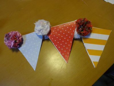 フラッグ作りとお花作りに分かれて作業をしていきます