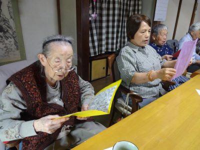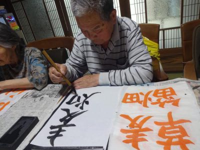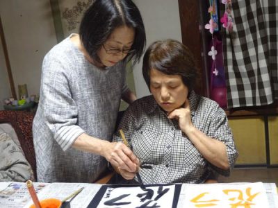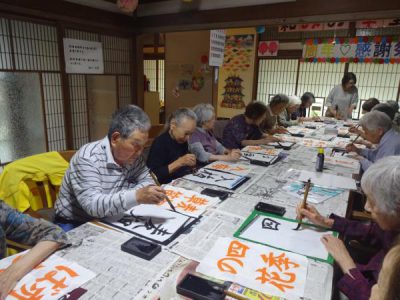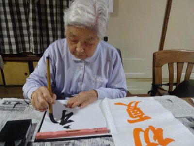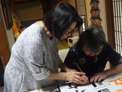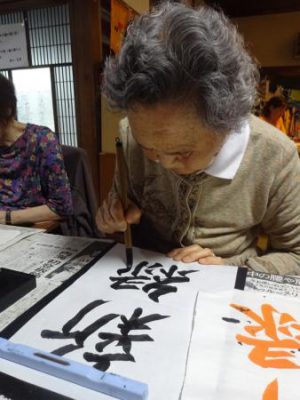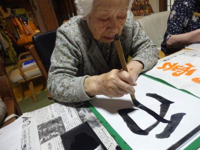 月に一回のお習字ですが皆さん先生の指導により