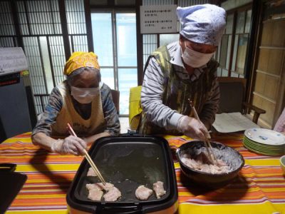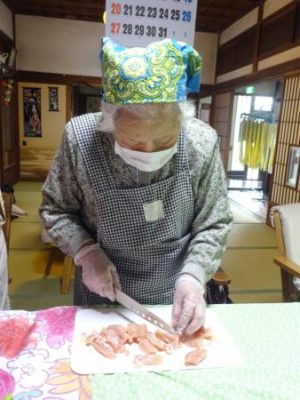 鶏肉を切り 味噌汁の具になる野菜を切り
