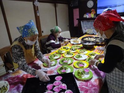 盛り付けも母達にお任せハートたち (複数ハート)