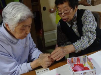 スタッフやお隣さんと協力して、完成を目指します手 (チョキ)