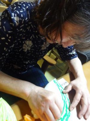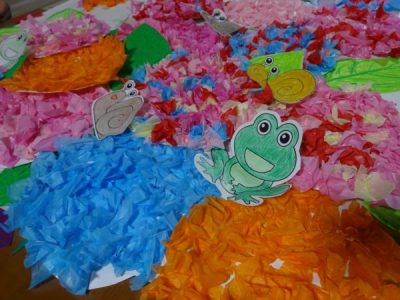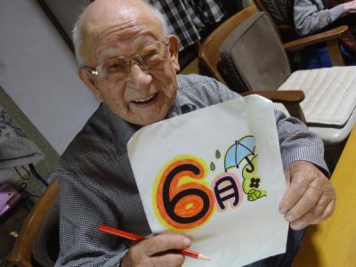 6月に向けて紫陽花の壁画作りわーい (嬉しい顔)