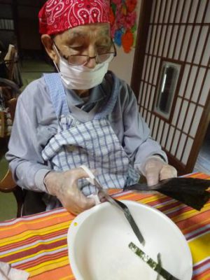 サ・・・サカナ・・・ほうれんそうの和えものにしらすが入ってます