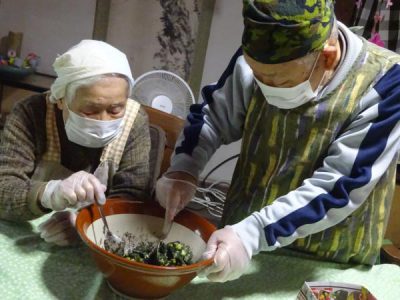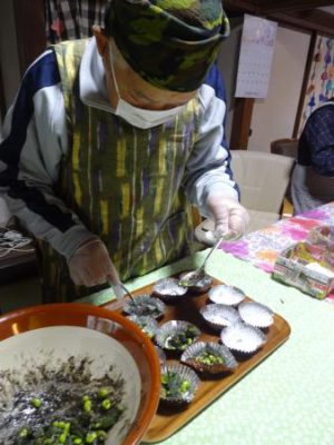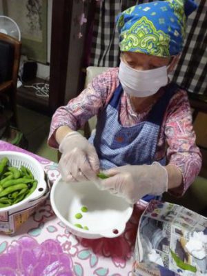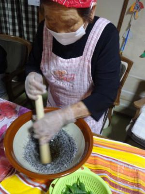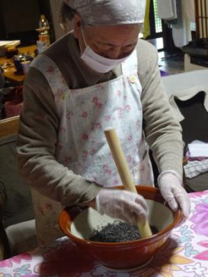 黒ゴマにオクラと枝豆と混ぜ合わせて・・・