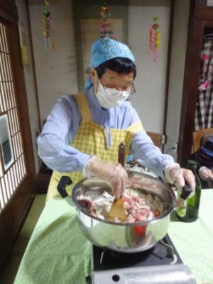 水を加えて・・・2人仲良くカレー作り