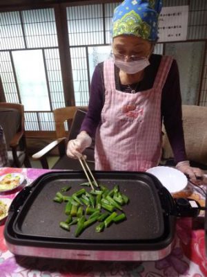 おくら・なすを炒めカレーに盛り付けます