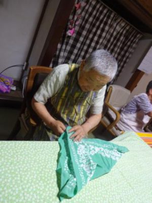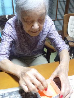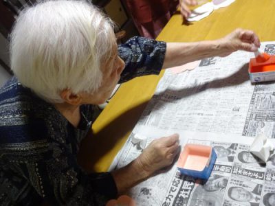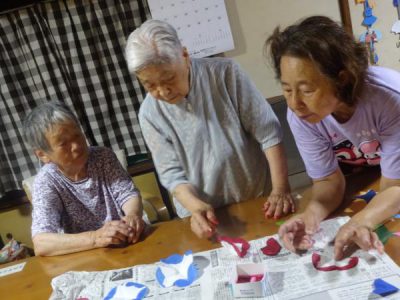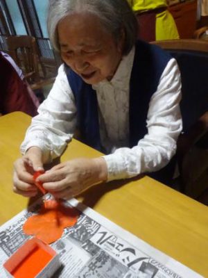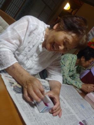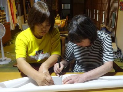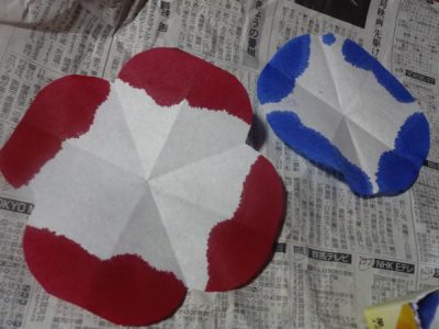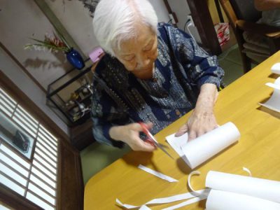 しょうじ紙を大・小と大きさを変えてはさみで切っていきます