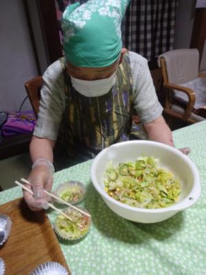 サラダ作り・・・ 父が丁寧に盛り付けて下さいました