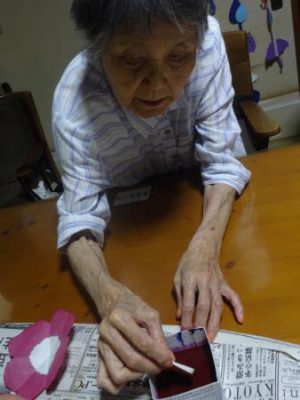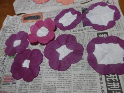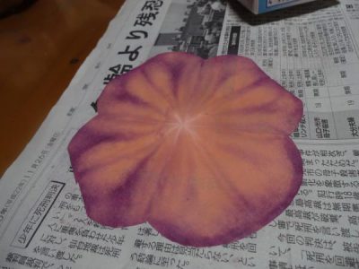 色づけした朝顔がなかなか開くことができずに悪戦苦闘