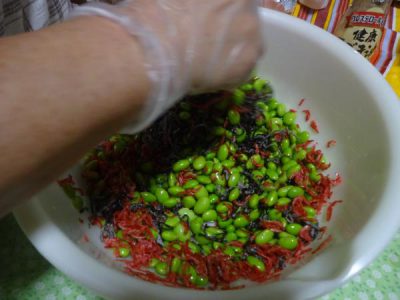 ★ 枝 豆 と 小 エ ビ の 塩 昆 布 和 え