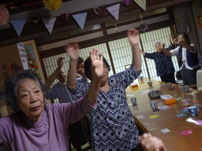 歌謡体操も元気よく行っていきます右斜め上右斜め上