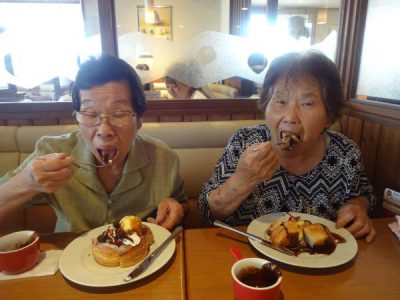 甘いものを食べて、更に集中力が増す父や母達うれしい顔