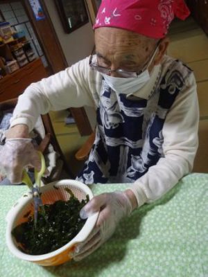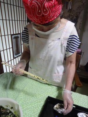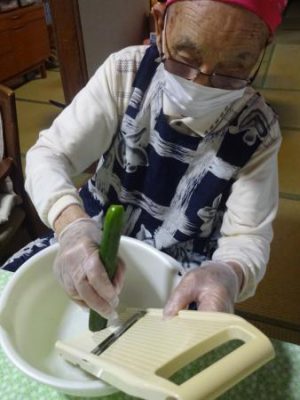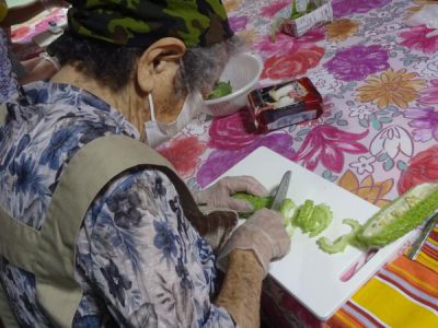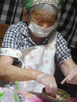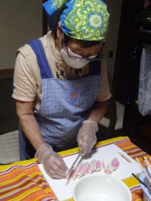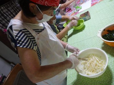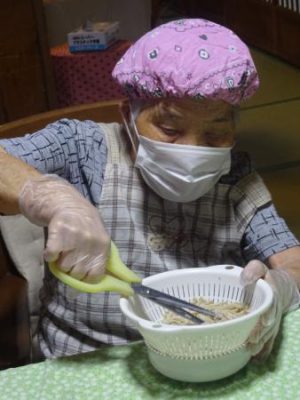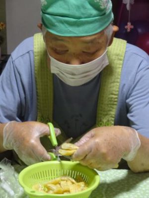 カニカマをさいたり 枝豆の皮むきをしたり