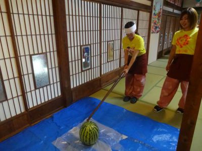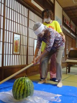 なんとっ!最初でスイカが割れました