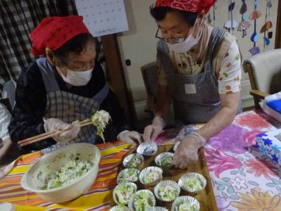 炒め物も協力して行い、母達の愛情たっぷり