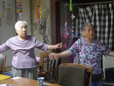 歌謡体操は、出来るだけ立って行い