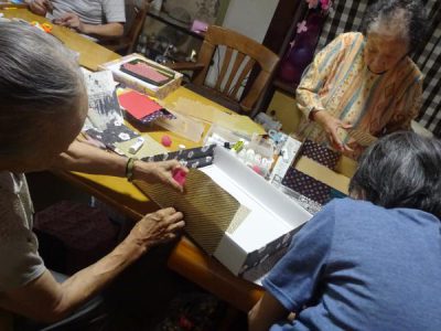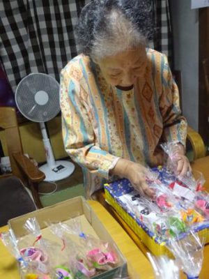 さっき作った箱に 靴下などを詰めていきます(^^)
