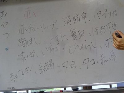 ちなみに 伝言ゲームは2チーム対抗で行いました♪
