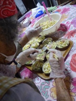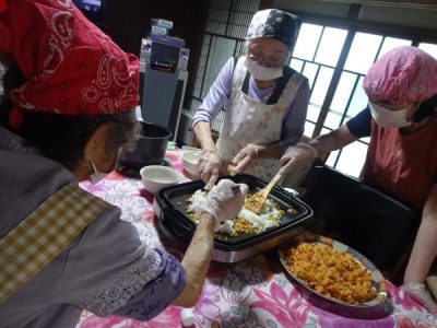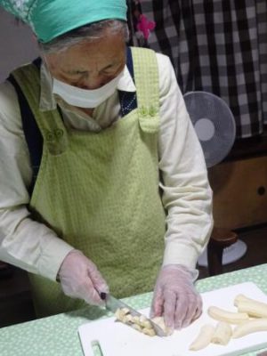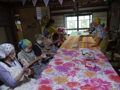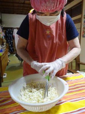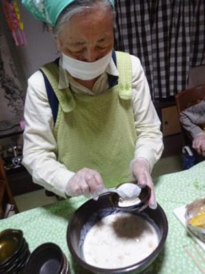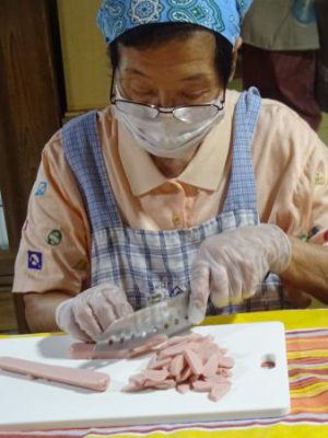 マカロニサラダ・豆乳バナナヨーグルトの盛り付けも皆さんにお任せ