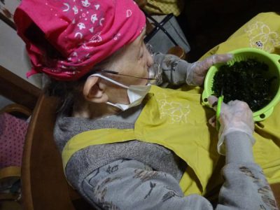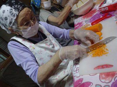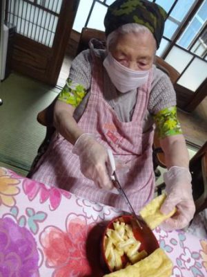 ハサミ・包丁・スライサーを使い形がだんだんと代わっていく野菜達