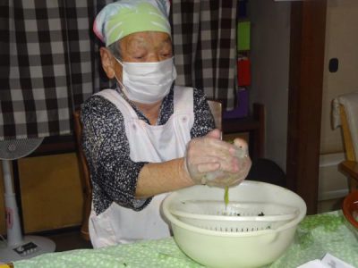 絞ったり・・・・(ちなみに 茹でたほうれん草です