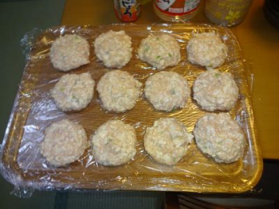 捏ねたり・・・・(ちなみにコレは お豆腐と鶏ひき肉です