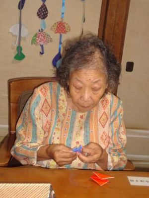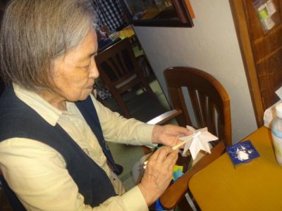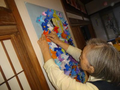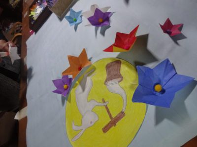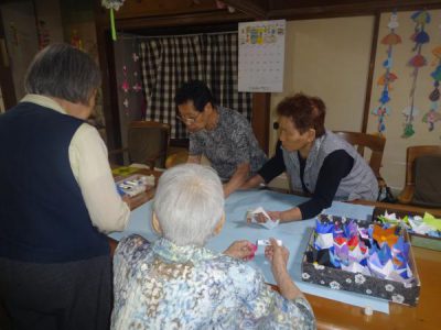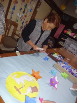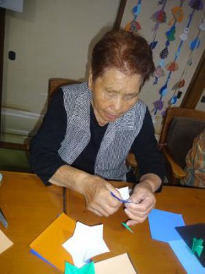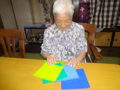 折り紙の色選び 折ったり 切ったり 糊付けしたり