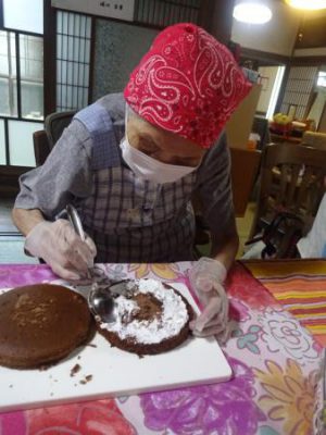 こちらは・・・ 堀口オーナーのバースディーケーキ作り