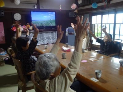 ボケたらあかんの唱和・【里の秋】・歌謡体操も