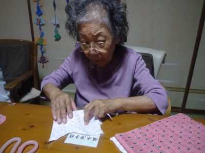 庵に着いて、折鶴を折ってくださいました