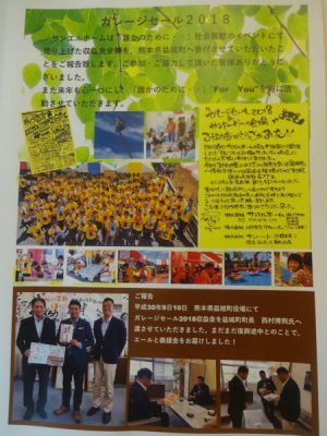 ガレージセール2018での収益金全額を