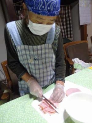 さっそくある料理の材料を切っていきます・・・るんるん (音符)