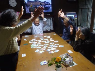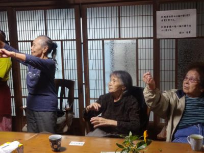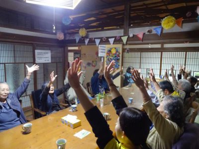 ボケたらあかんの唱和・【里の秋】の合唱・歌謡体操も