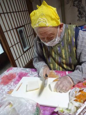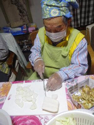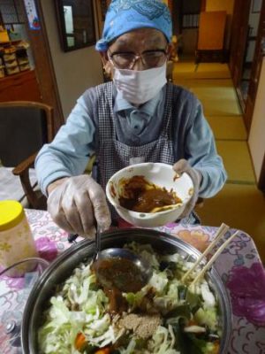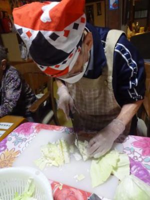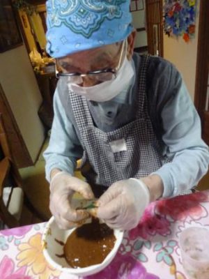 午前中は、お味噌汁作りのお父さんチームと
