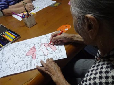 どこから塗るか、どんな色を使うか考えたり、手を動かして塗る作業は