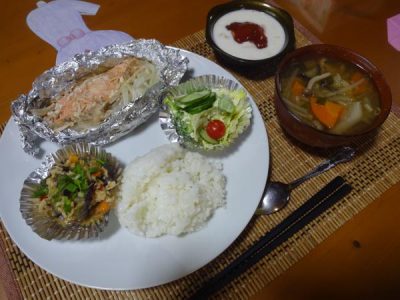 ホイル焼きに包む野菜や肉味噌炒めのナスなど