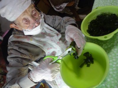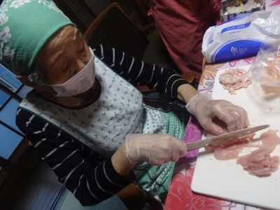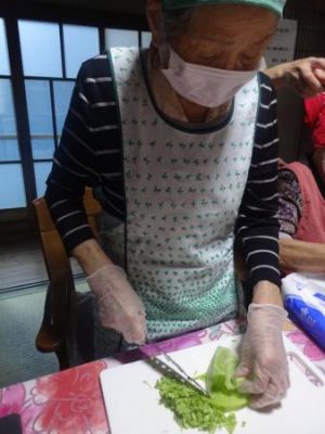 手際よくはさみ・包丁を使って今日使う食材を切っていきます