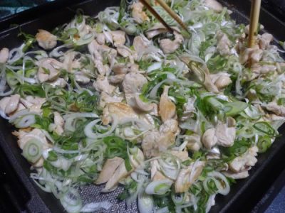 こちらは鶏肉と長ねぎの炒め物作り