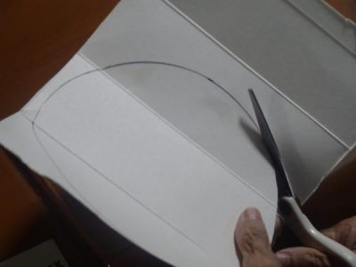 まず、使用済みの牛乳パックに、丸く型取りをして切り取りました~