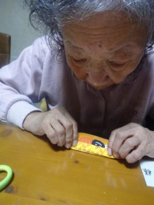 ジャバラ状に折り終わった段階で、真ん中でホチキス止め