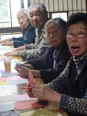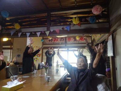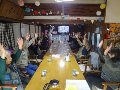 ボケたらあかんの唱和・【里の秋】の合唱・歌謡体操も