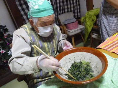 酢の物やゴマを和えていきます