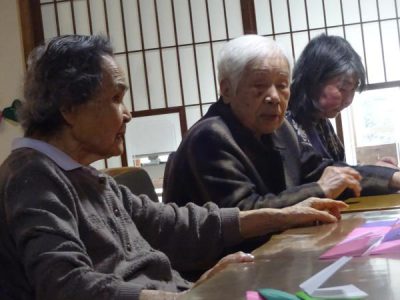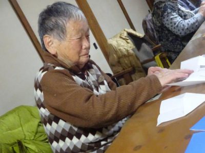 説明をしっかり聞き、慎重に折っていく父や母達